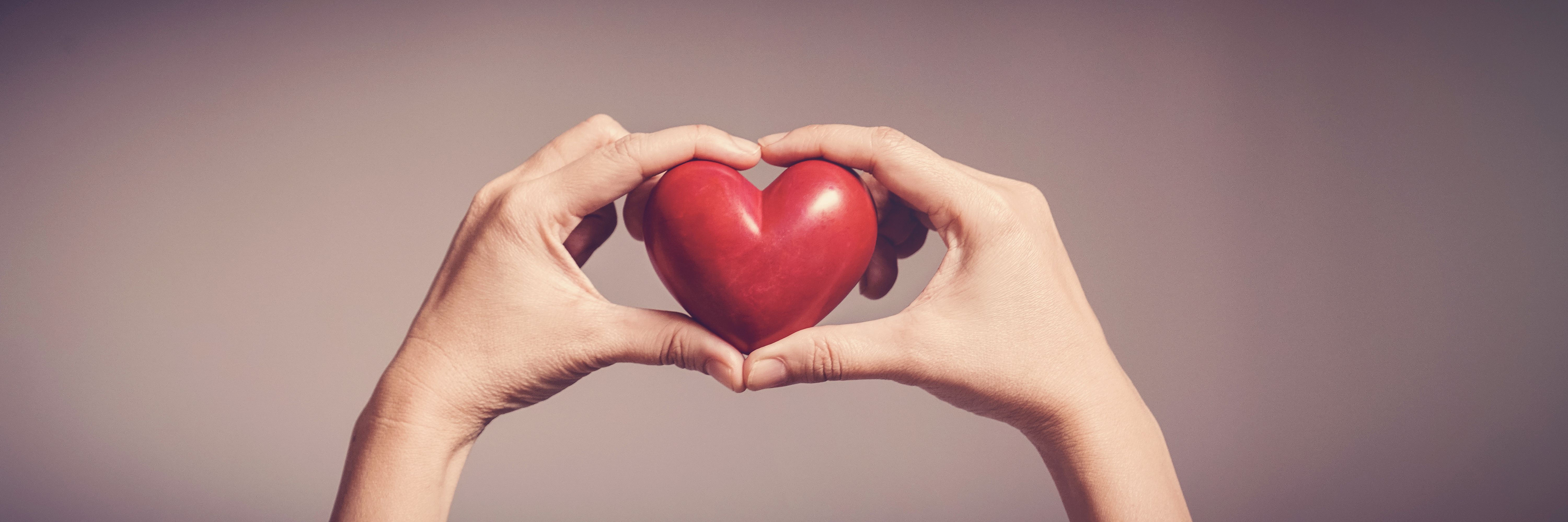 Das Bild zeigt zwei Hände, die ein rotes Herz halten.