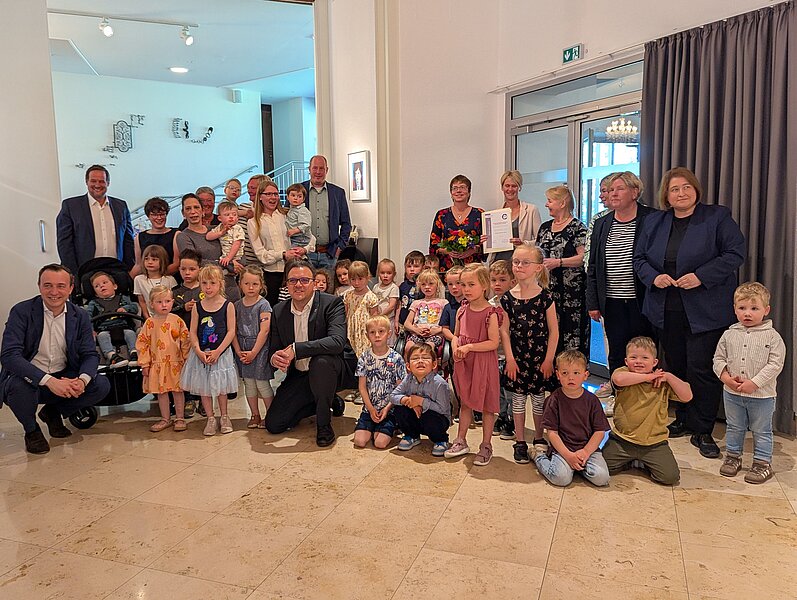 Im festlichen Rahmen und vor zahlreichen Gästen überreichten Mechthild Starke-Kersting, Vorsitzende des Beirates für Inklusion, und Bürgermeister Michael Joithe am 11. Mai 2025 den bereits 15. Stefan Haacke-Preis im Parktheater an die Integrative Kindertagesstätte "Ein Haus für alle Kinder".