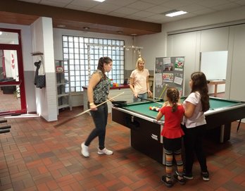 Unser Raumangebot ist vielseitig, um den unterschiedlichen Angeboten des Treffs gerecht zu werden. So haben wir einen großen Saal, welcher mit einer Bühne sowie Licht- und Tontechnik ausgestattet ist. Ein offen gestalteter Bereich mit Küche, Café und angrenzendem Aktionsraum, in welchem ein Kicker- und Billardtisch sowie eine Tischtennisplatte und ein Airhockeytisch stehen, bilden den Kern unseres Quartierstreffs. Ein kleiner Medienraum mit einer Playstation 4pro, zwei Sofas, zwei Schreibtischen und zwei PC´s bietet Raum zum Computer- oder Konsolespielen. Zusätzlichen gibt es noch ein Kaminzimmer mit einer kleinen Küche sowie einen Gruppenraum.