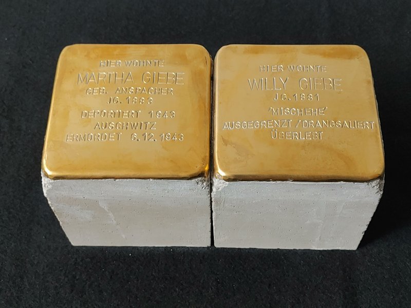 Nach Hinweis der Stolpersteininitiative Berlin im Jahr 2022, wurde der Kontakt zu James Schultz aus New York (USA) aufgebaut, welcher für seine Großtante Martha Giebe (geb. Anspacher) einen Stolperstein in Iserlohn wünschte. Martha Giebe war mit Willy Giebe verheiratet, ehemaliger Kinobesitzer in Iserlohn, und die zuletzt freiwillig gewählte Wohnstätte war an der Schauburg in der ehemaligen „Villa Giebe“. Nach weiteren fundierten Recherchen des Stadtarchivars Rico Quaschny, waren auch Stolpersteinverlegungen für die Familie Ehrlich, eine ehemalige Kaufmannsfamilie in Iserlohn, möglich. Nach langer Zeit konnten daher wieder 10 Stolpersteine in Iserlohn verlegt werden. Diese symbolträchtigen Steine wurden für Martha und Willy Giebe (Hans-Böckler-Str. 18), dem Ehepaar Salomon und Regina Ehrlich sowie ihren Sohn Siegfried und dessen Frau Helene (Gartenstr. 42) und die Familie Walter und Hedwig Ehrlich mit den Kindern Heinz Richard und Kurt Günter (Wasserstr. 2a) verlegt.