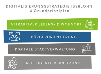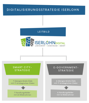 Grundlage aller Digitalisierungsvorhaben ist das Leitbild "iserlohn digital", welches eine Orientierung bei den Digitalisierungsvorhaben der Stadt Iserlohn bietet. Es ist richtungsweisend bei der Identifizierung, Planung und Durchführung von digitalen Projekten und der Einführung neuer Technologien. Das Leitbild beschreibt ebenso Ziele für verschiedene Bereiche und ist damit gleichzeitig Ausgangspunkt aller künftigen Digitalisierungsaktivitäten.