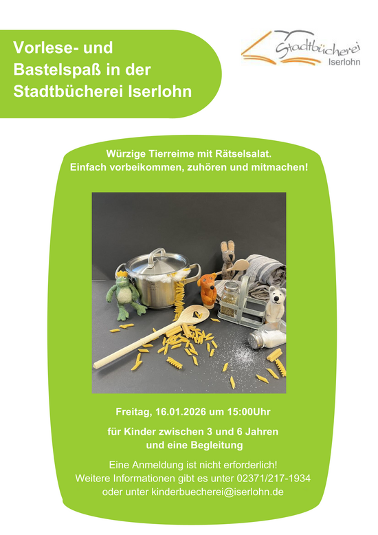 Weitere Informationen gibt es unter 02371/217-1934 oder unter kinderbuecherei(at)iserlohn.de