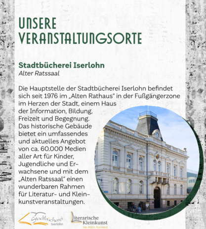 Eintrittspreis: für die Veranstaltungen in der Stadtbücherei Iserlohn 15,00 € (ermäßigt: 7,50 €)
