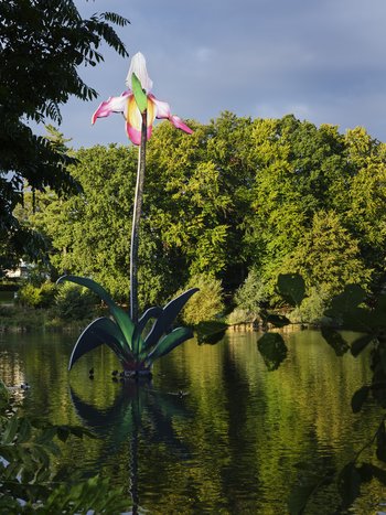 "The Overwhelming World of Desire (Phragmipedium Sedenii)" [Die überwältigende Welt der Sehnsucht] besteht aus beschichtetem und lackiertem Stahl. Dargestellt ist eine überdimensionierte Orchidee, die den Menschen in die Insektenperspektive versetzt und mit einem üppigen Blütenkelch anlockt. Die bunte und gigantische Skulpturen-Pflanze fasziniert aus ganz verschiedenen Perspektiven und Blickachsen.