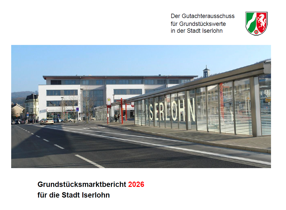 Der aktuelle Grundstücksmarktbericht 2026 und die aktuellen Boden- und Immobilienrichtwerte für den Zuständigkeitsbereich des Gutachterausschusses für Grundstückswerte in der Stadt Iserlohn wurden am 11.03.2026 beschlossen und sind nun im zentralen Informationssystem der Gutachterausschüsse und des Oberen Gutachterausschusses für Grundstückswerte in Nordrhein-Westfalen [www.boris.nrw.de] einsehbar. Es wurden hierfür die Kaufverträge des Jahres 2025 ausgewertet.
